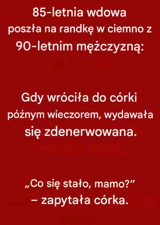 85-letnia wdowa poszła na randkę w ciemno z 90-letnim dżentelmenem.