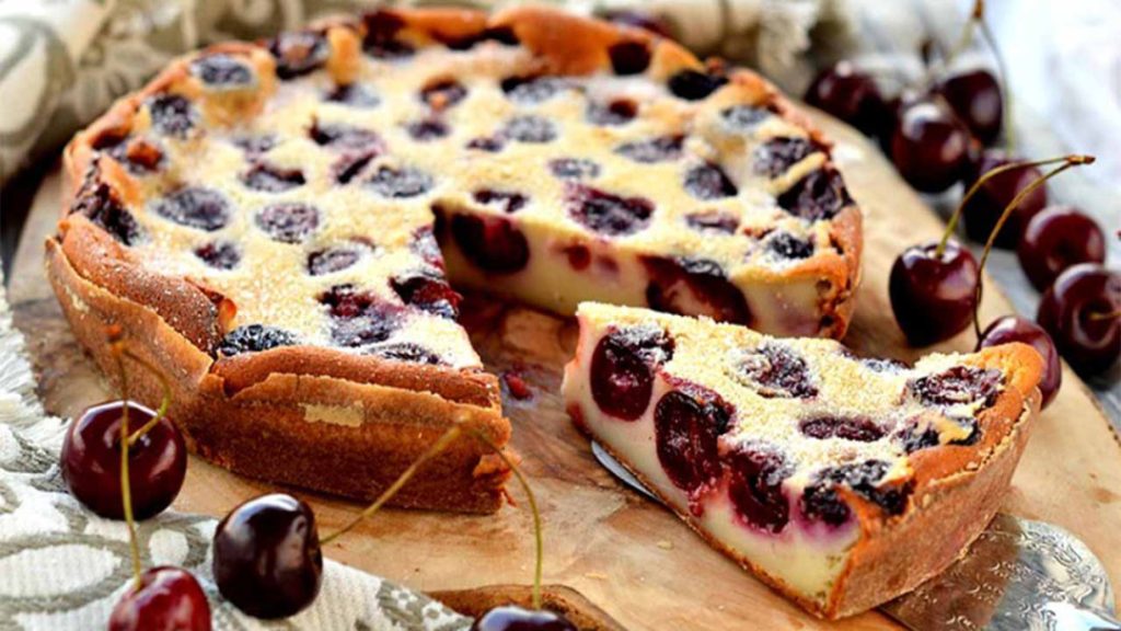 Umieść blachę w rozgrzanym piekarniku i piecz przez około 35-40 minut, aż clafoutis będzie złocistobrązowy i stężeje.