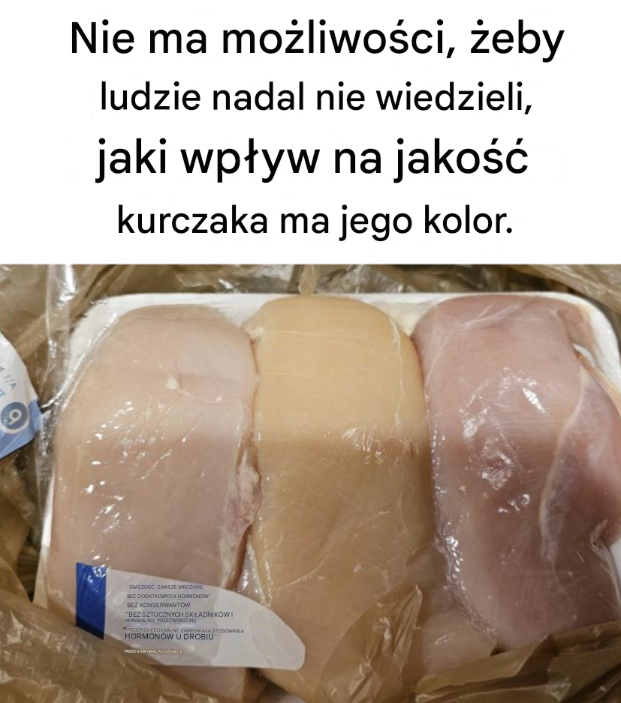 Kolor kurczaka coś mówi, ale nie o jakości, jaką większość ludzi zakłada. Biały kurczak zazwyczaj pochodzi od ptaków z ferm przemysłowych, karmionych zbożami takimi jak kukurydza, pszenica i soja. Te ptaki szybko rosną, mało się ruszają i rzadko wychodzą na zewnątrz. Ich mięso jest bladoróżowe lub białe, czasami z niebieskawym odcieniem.