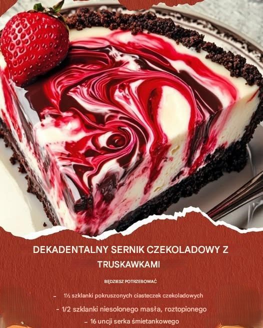 Wlej pozostałą mieszankę serka śmietankowego na pierwszą warstwę. Powtórz proces zawirowywania z pozostałym puree truskawkowym i syropem czekoladowym.