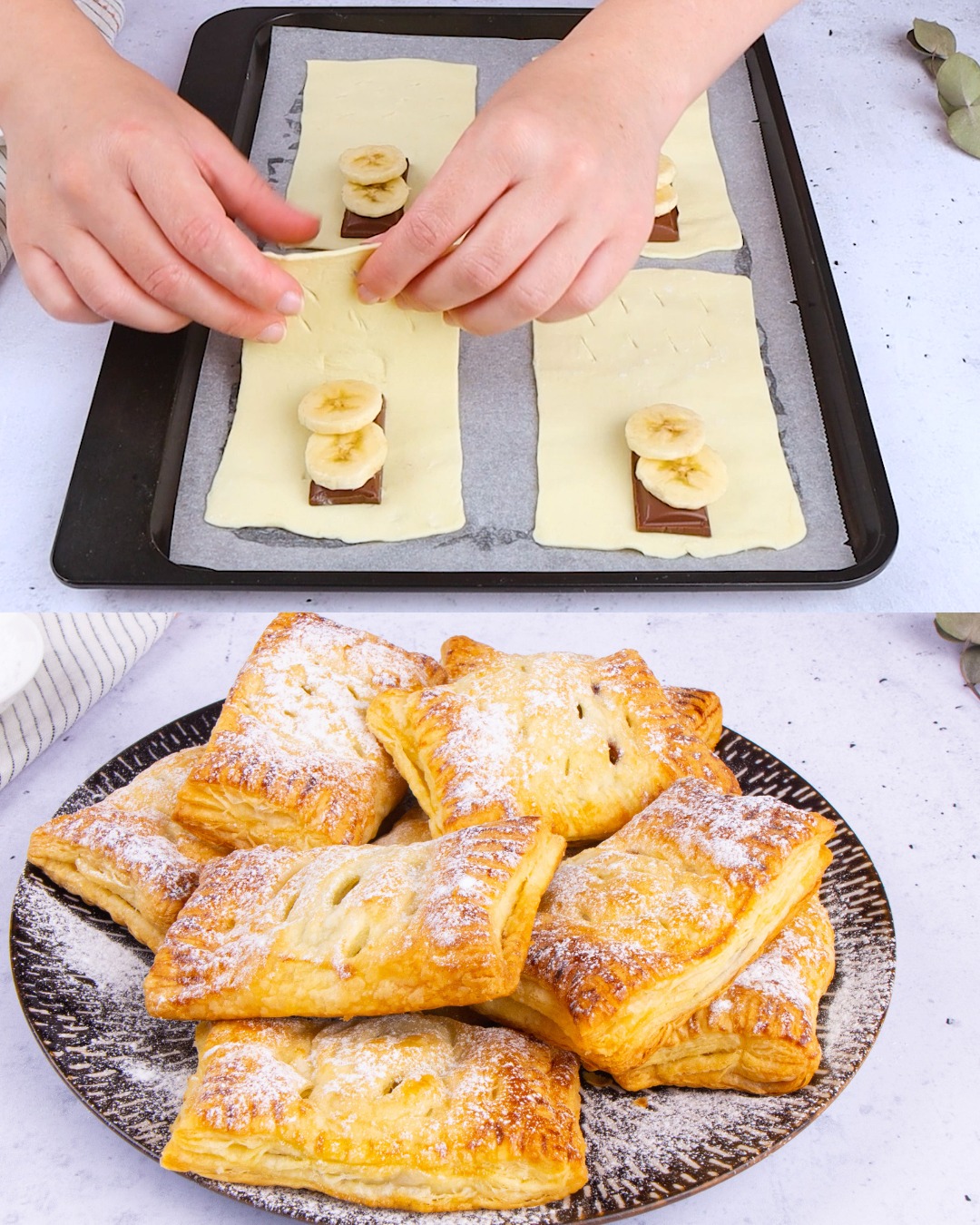 Jeśli szukasz przepisu na szybki i efektowny deser, ciastka francuskie z czekoladą i bananem będą strzałem w dziesiątkę! Połączenie kruchego ciasta, aksamitnej czekolady i słodkiego banana sprawia, że każdy kęs to prawdziwa rozkosz. Idealne na spotkania z bliskimi, jako słodka przekąska do kawy lub szybki deser dla niespodziewanych gości.