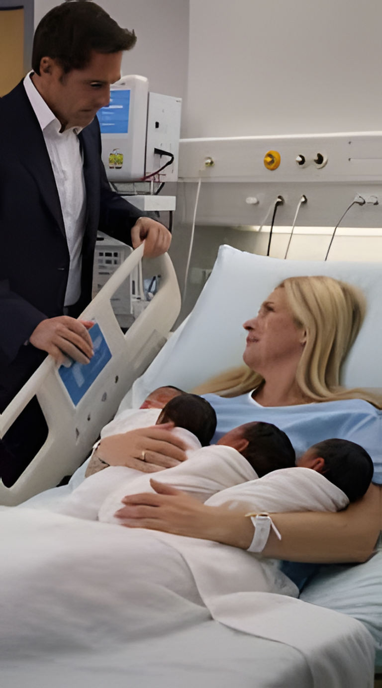 Młoda matka, wyczerpana, ale promieniejąca, uśmiecha się przez łzy, ukryte na twoich czworaczkach. Malutkie, kruche i idealne.