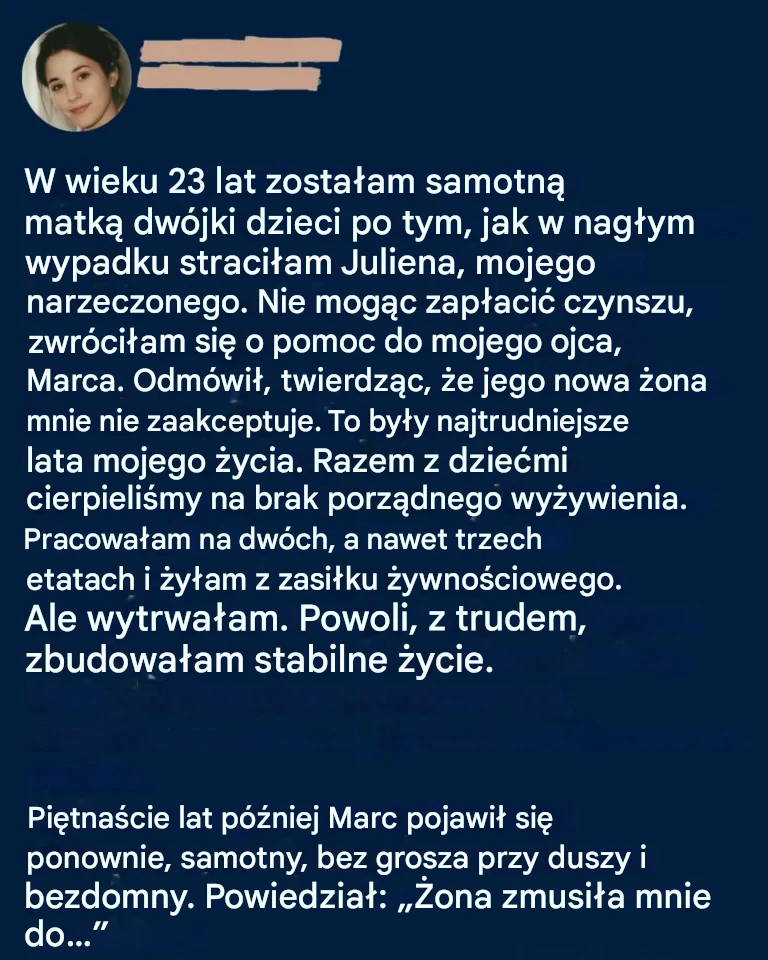 Odpowiedź była szokująca. Nie ma miejsca, nie teraz, nie w tej i tak już kruchej równowadze. Ta odmowa, o wiele bardziej materialna niż materialna, pozostawiła głęboki ślad: poczucie niewidzialności w momencie, gdy najbardziej potrzeba bycia widzianym.