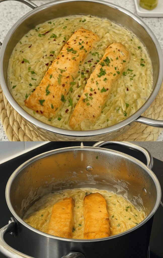 Orzo z łososiem i serem Boursin: kremowe i wyrafinowane danie