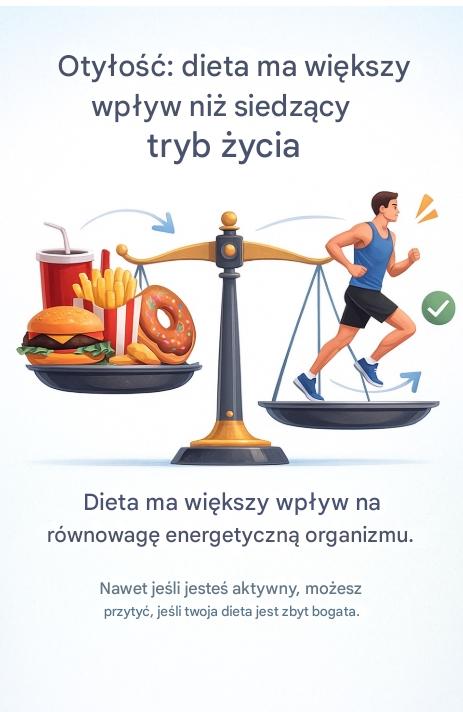 2. Siedzący tryb życia nadal stanowi czynnik pogarszający sytuację, ale mający charakter drugorzędny.