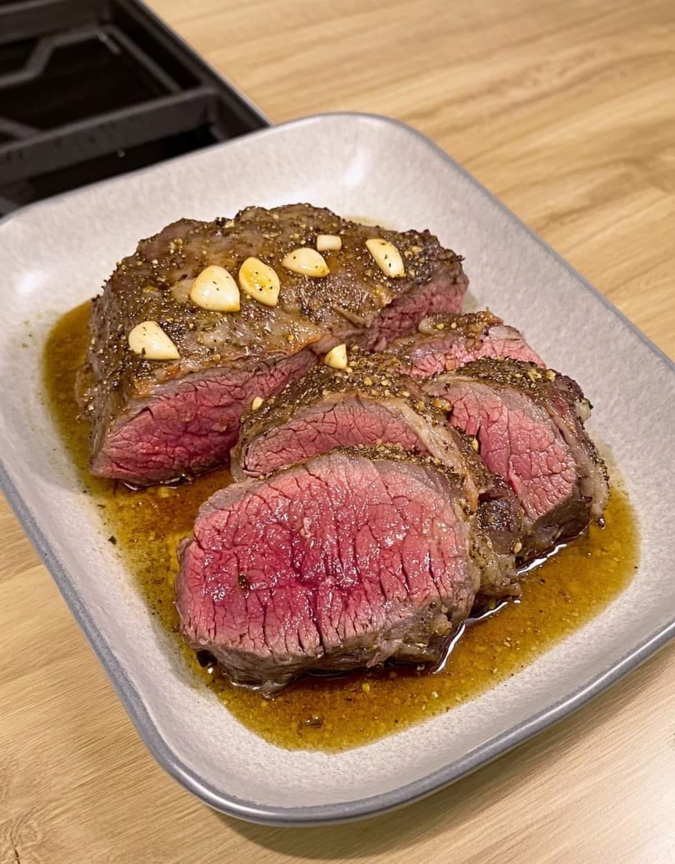 Składniki: – 1 rostbef (ok. 1,2 kg) – 6 ząbków czosnku – 3 łyżki oliwy z oliwek – 1 łyżka świeżego tymianku – Sól, pieprz zobacz więcej na następnej stronie ReklamaPrzygotowanie: