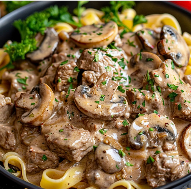 Domowy Stroganow z Wołowiną i Grzybami w Kremowym Sosie
