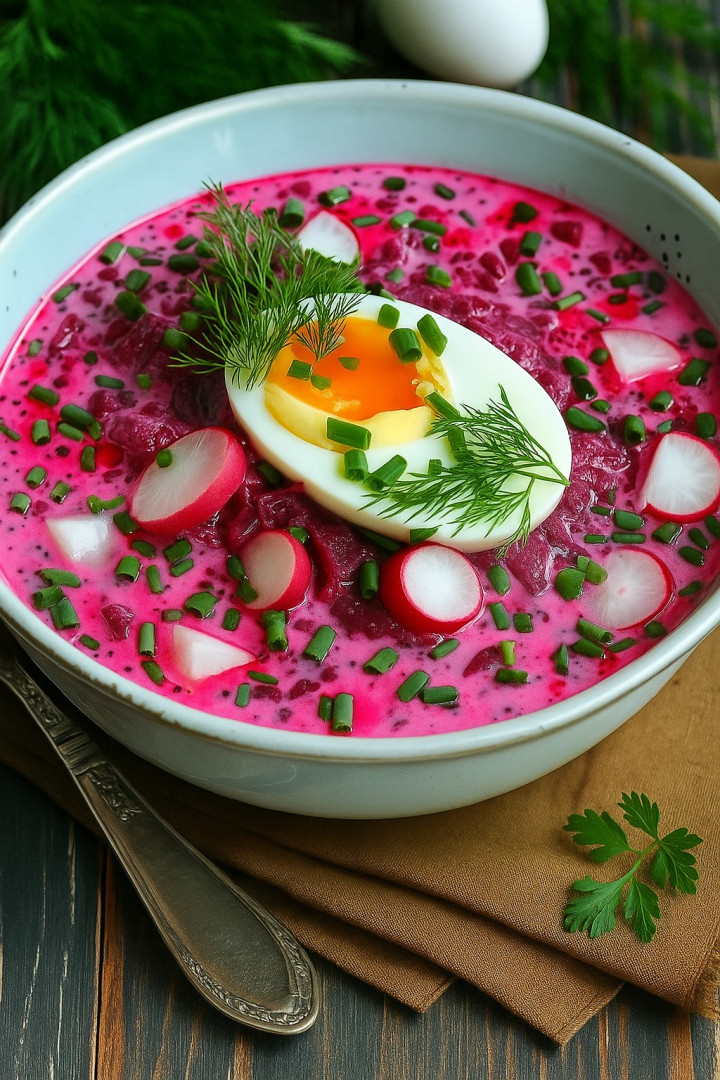 Chłodnik Litewski Chłodnik Litewski Składniki: 2 pęczki botwinki (z młodymi buraczkami i liśćmi) 1 świeży ogórek 1 pęczek rzodkiewek 1 litr kefiru lub maślanki (można też dodać jogurt naturalny) 1 szklanka śmietany 18% 2 jajka (ugotowane na twardo) 1 łyżka soku z cytryny lub octu 1 pęczek szczypiorku 1/2 pęczka koperku sól i świeżo mielony pieprz … Read more