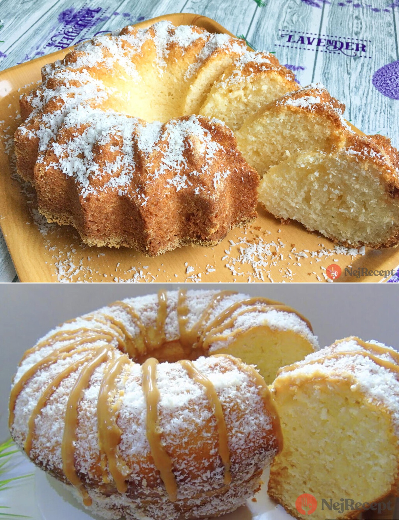 Przepis w kubku na najlepsze ciasto kokosowe RAFFAELLO Składniki 2 szklanki mąki pszennej 1 szklanka kokosa 1 szklanka cukru granulowanego 1 szklanka mleka 1 szklanka oleju roślinnego 1 opakowanie proszku do pieczenia 1 opakowanie cukru waniliowego 3 jajka, połamane na mniejsze kawałki biała czekolada Przepis