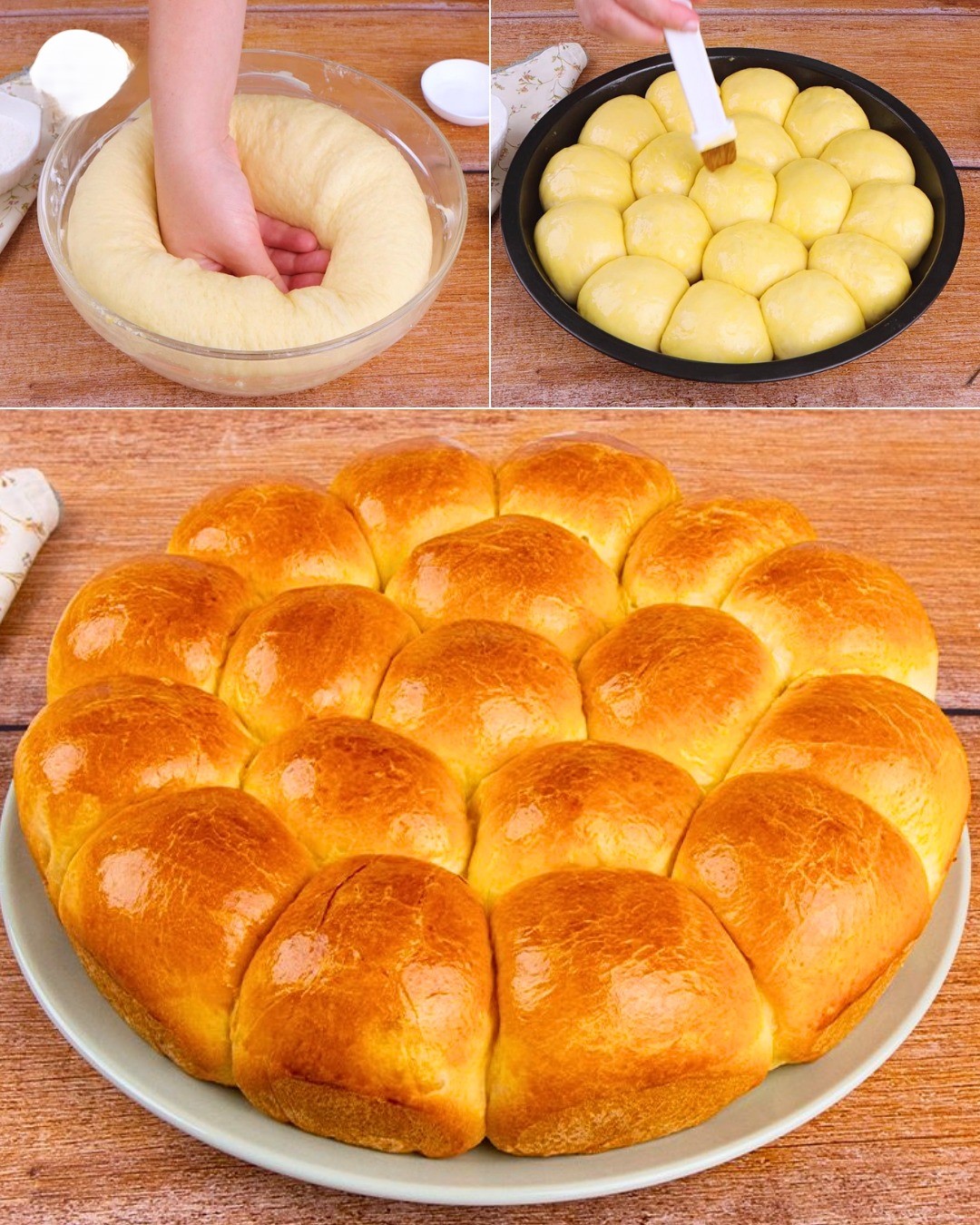 Ułóż kulki w natłuszczonej formie do pieczenia, jedna obok drugiej. Przykryj je ściereczką i odstaw na kolejną godzinę do wyrośnięcia.