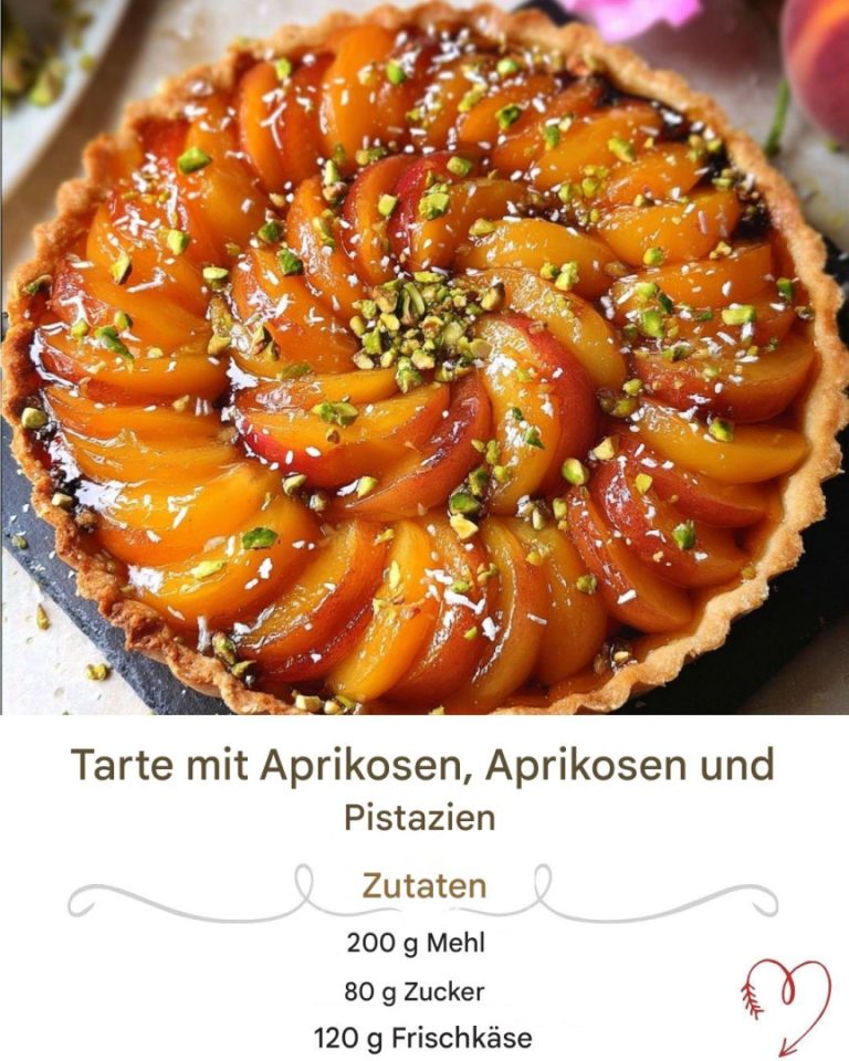 Ta tarta z morelami, migdałami i pistacjami to prawdziwa rozkosz dla podniebienia. Słodycz moreli idealnie uzupełnia bogactwo kremu migdałowego i chrupkość pistacji.
