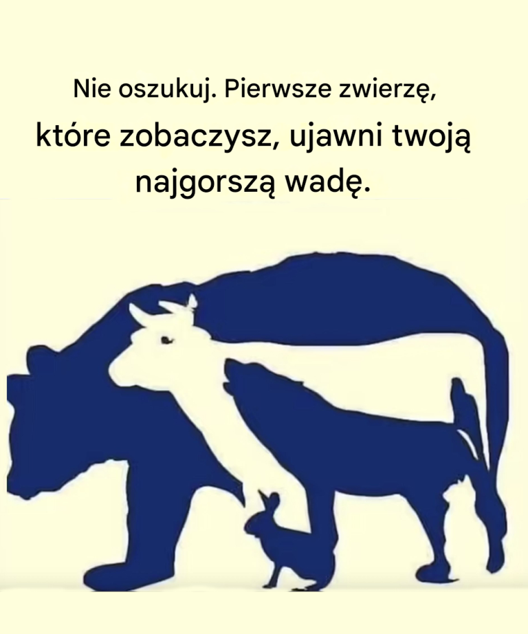 Złudzenia optyczne często ujawniają drobne elementy naszej osobowości, których nie zawsze rozpoznajemy – czasem w zabawny sposób, a czasem z zaskakującą dokładnością. Powyższy obrazek przedstawia jedną z takich iluzji, przedstawiającą kilka zwierząt sprytnie ukrytych w jednej sylwetce. Idea jest prosta: zwierzę, które zauważysz jako pierwsze, rzekomo wskazuje na twoją „największą wadę”.