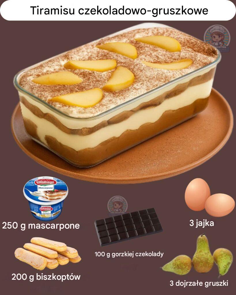 Dekadencka wersja klasycznego tiramisu, która łączy słodycz rozpływającej się gruszki z intensywnym aromatem czekolady, tworząc elegancki deser.