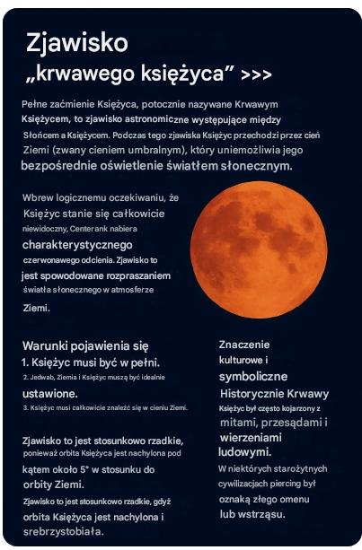Całkowite zaćmienie Księżyca , potocznie nazywane Krwawym Księżycem , to spektakularne zjawisko astronomiczne, które ma miejsce, gdy Ziemia przechodzi między Słońcem a Księżycem. Podczas tego zjawiska Księżyc przechodzi przez cień Ziemi (zwany cieniem umbralnym), który uniemożliwia mu dotarcie bezpośredniego światła słonecznego.